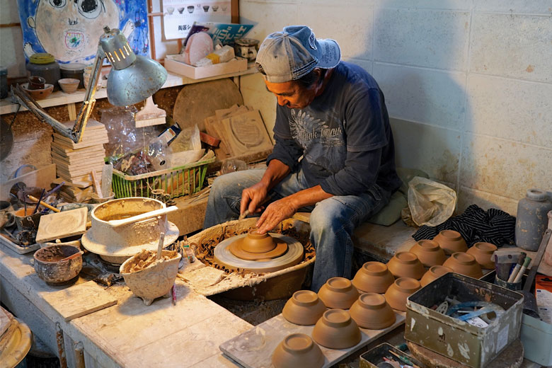 掘井さんは、沖縄読谷村の北窯で修行したのち石垣島へ移住し独立、2000年に「太朗窯」を立ち上げました。