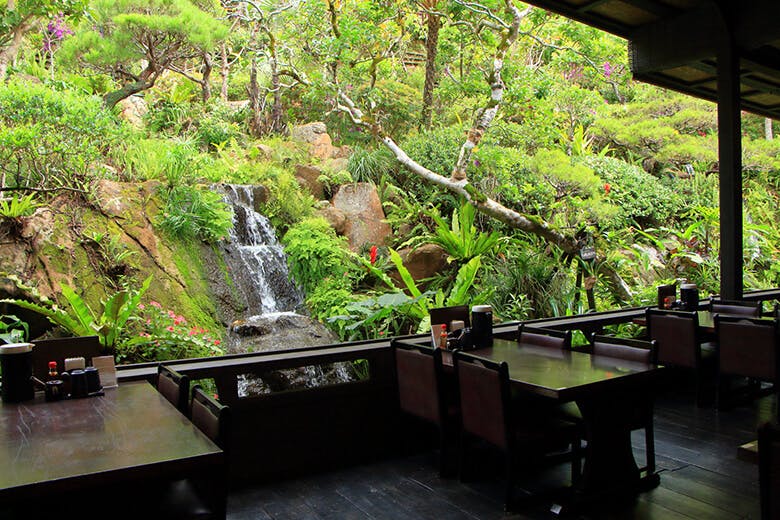 4.滝の流れる縁側席でのひとときはまるで別世界