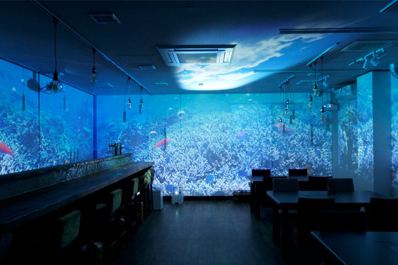 そのプロジェクションマッピングでは、なんと店内の壁をグルッと囲んで映像を投影!