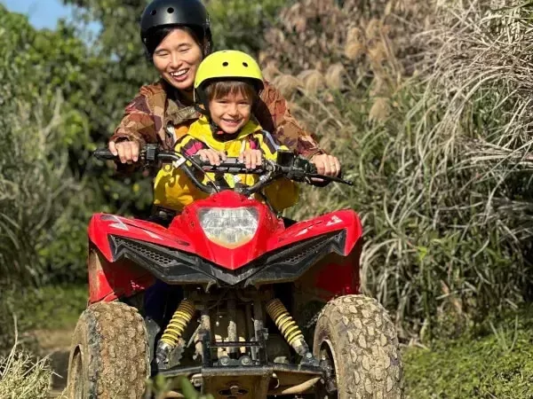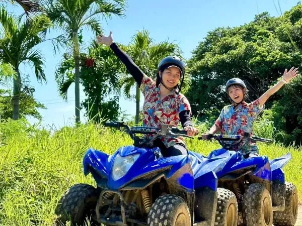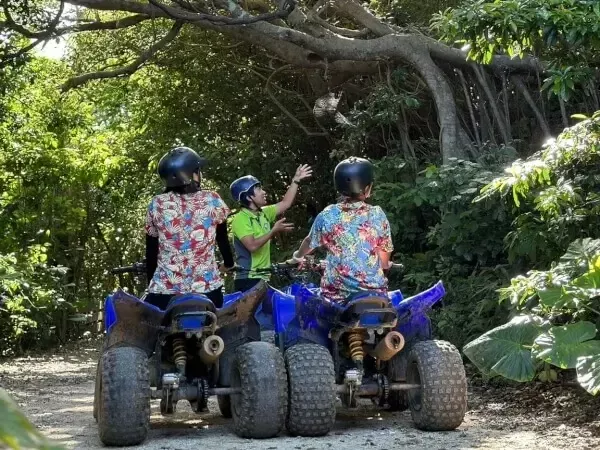 四輪バギーに乗って、ガイドと一緒に