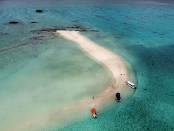 幻の島はエメラルドブルーの海に囲まれ、潮位によって大きさや形が変化する白砂の島。