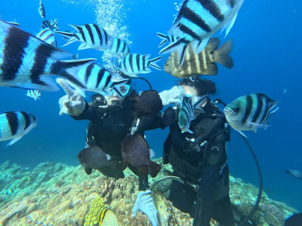 スタッフの方が明るくて面白くて、ダイビングがさらに楽しみになりました。ダイビング前も耳抜きの方法や息のタイミングなど教えてくださり安心して体験できました。ロケーションは最高でした!魚も可愛くて癒されました。貴重な体験をありがとうございました!
