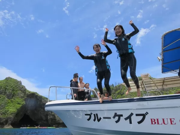 【沖縄・恩納村】青の洞窟体験ダイビング(ボート開催・ガイド完全貸切・店舗集合)|昨年1500名以上案内/移動ラクチン!ボート開催/高画質写真・動画データ無料/餌付け体験付き