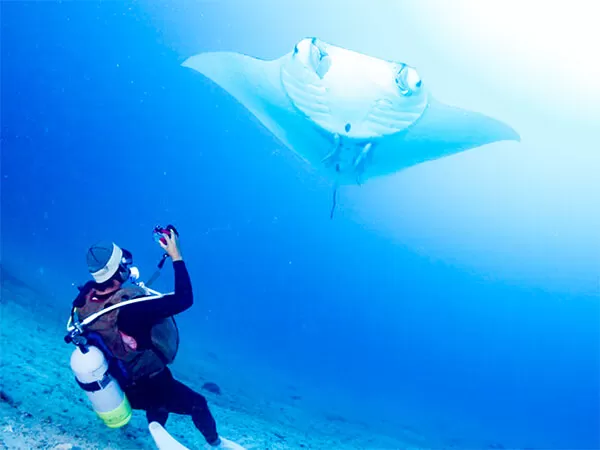 大海原に舞う野生のマンタとの出会いは、きっとあなたをダイビングの虜にしてしまう事でしょう。