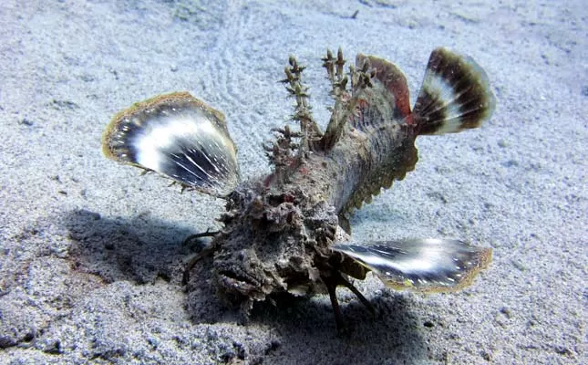 | 特徴 | 背びれにある棘に毒を持っている。砂の中に潜んでいることが多く、気づかずに踏みつけてしまうことがある。棘はゴム底の靴を貫通するほど強力。刺されると、痺れやめまい、呼吸困難、意識喪失を伴うこともあり、国内での死亡例も数件ある。アナフィラキシーショックにより、重篤な症状に陥る可能性もある。 |