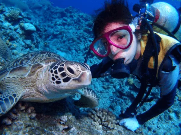 ダイビングが初めての方でもインストラクターがマンツーマンでサポートするから安心♬