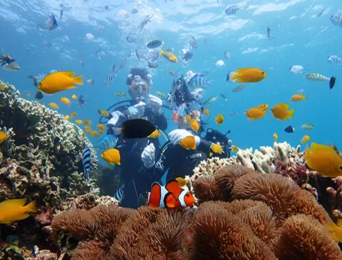 ポイントには、元気なサンゴに色鮮やかな熱帯魚に会えますよ。