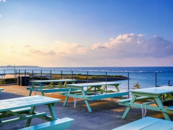 恩納ブルーを180度パノラマで♪ウェルカムドリンクをご堪能下さいませ。