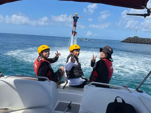 ジェットスキーではなくボートでフライボードを行うため、団体様も乗船可能!