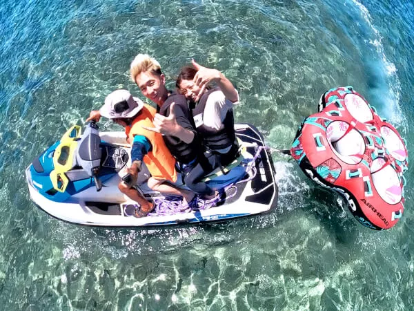 ジェットスキー体験・バナナボート・マーブル・ビスケットの中から、状況や人数に合わせて、スタッフにて選ばせていただきます♪