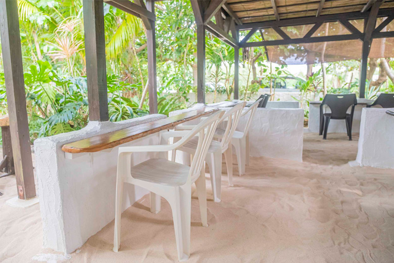 また、店内の床面には、まるでビーチにいるかのような白い砂がひかれていて、まさに南国リゾートの気分を味わえます。