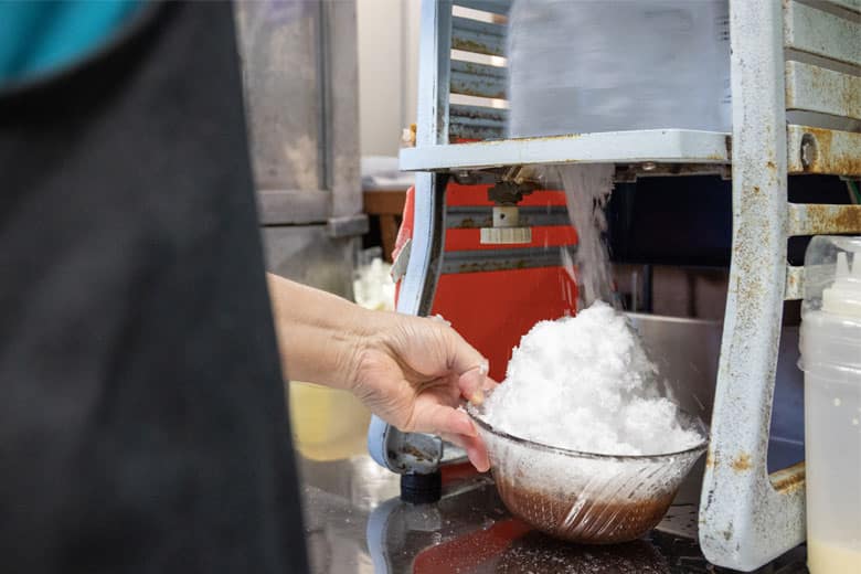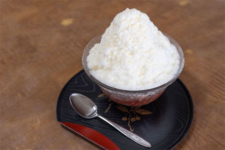 観光客からの人気は、アイスぜんざいの上に練乳がかかったミルク金時。