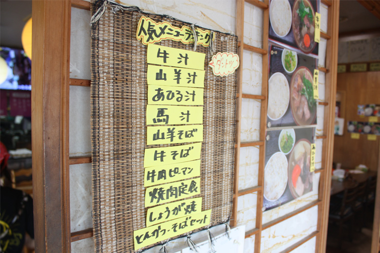 「牛肉は安くていっぱいある。創業当時から牛汁と山羊汁はずっと人気。他のメニューはあとからどんどん追加されたもの(笑)。メニューはたくさんあるけど、(年中通して)やっぱり汁物は人気。量が多いし、腹持ちがいいからね」。