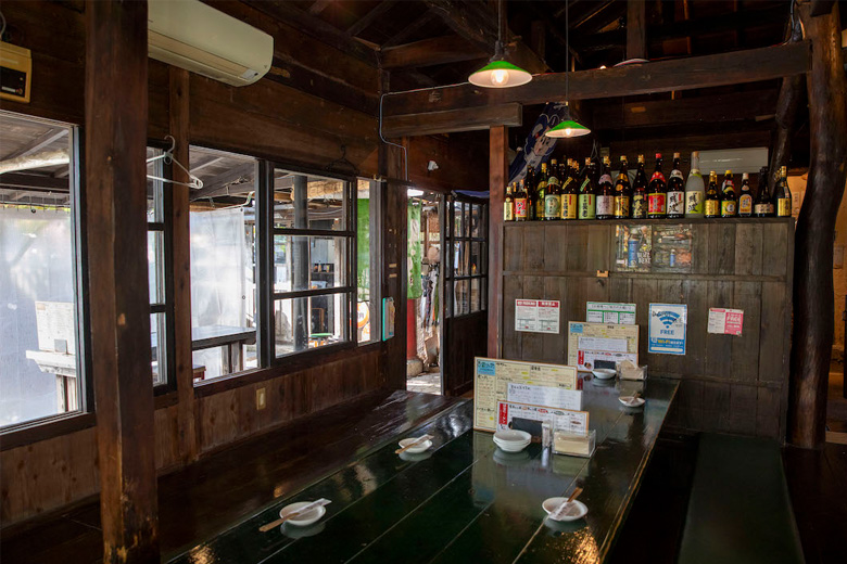 店内にずらっと並べられた泡盛の瓶は圧巻です。