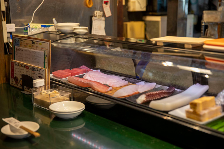 目の前のネタケースにはキレイな鮮魚が並んでいます。