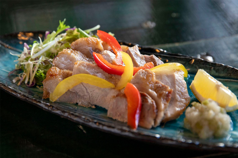 沖縄ブランド豚の「あぐーロースの炙り焼き1,650円」は臭みがほとんどなく、肉の旨みが抜群。