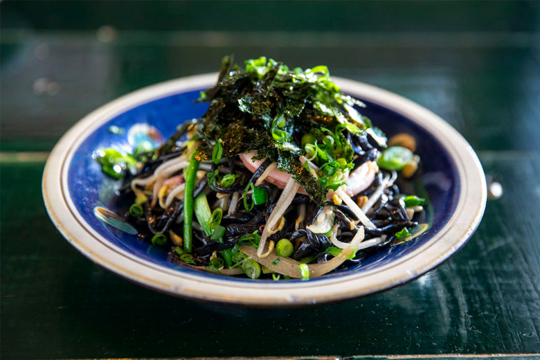 麺自体にイカスミが練り込まれているので歯が黒くなりにくく女性も周りを気にせずに食べられますよ。