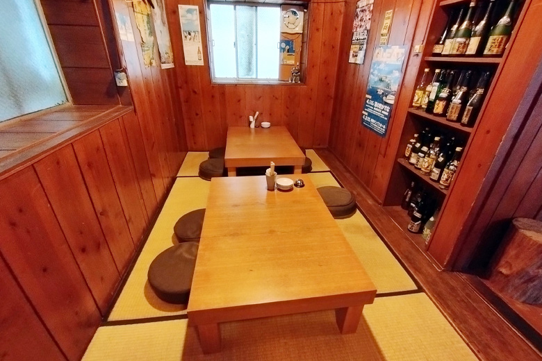 カウンターがあり、畳敷きの座敷席があり、さらに個室もあるので、ちょっとした団体のパーティにも対応できそうです。