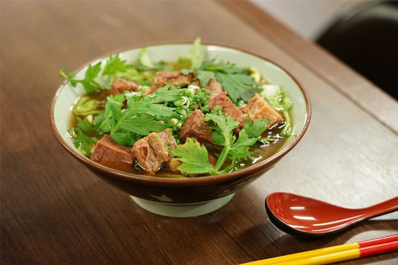 牛そばにはたっぷりのよもぎをのせて食べるのが石垣島流です。