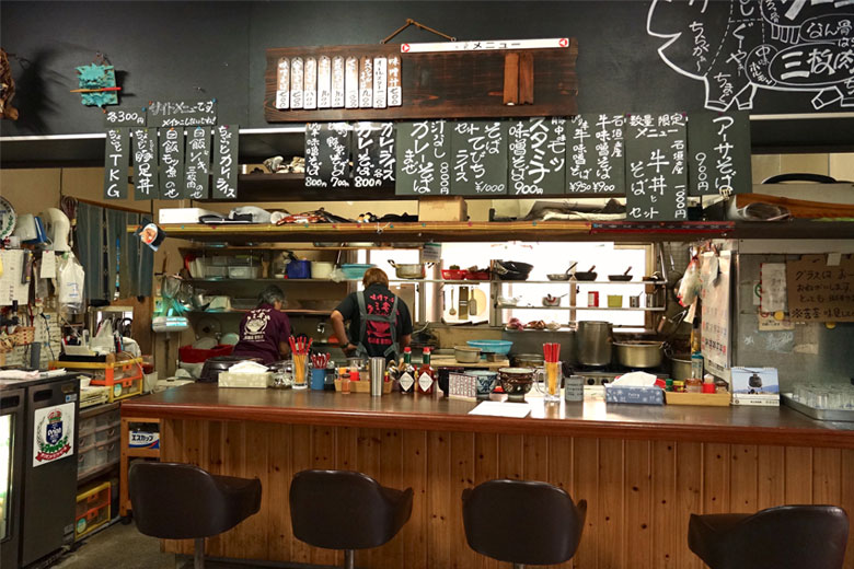 石垣島の街なかにあるキミ食堂は、八重山そばや味噌そば、味噌汁定食など、たくさんのメニューがある島の食堂です。
