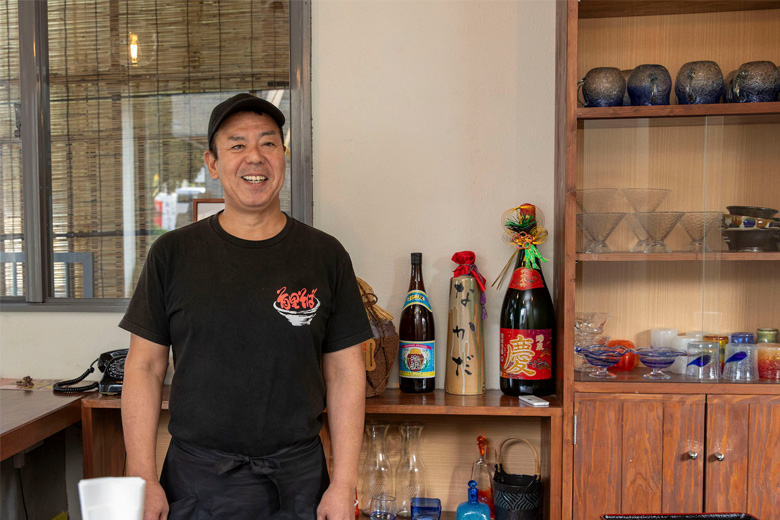 当時サラリーマンでしたが会社を辞め、一念発起して1994年にお店をオープンした仲田さん(撮影は姉妹店「首里そば なかだ」にて)。