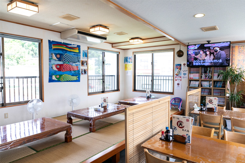 テーブル席にお座敷もあって広々とした店内。