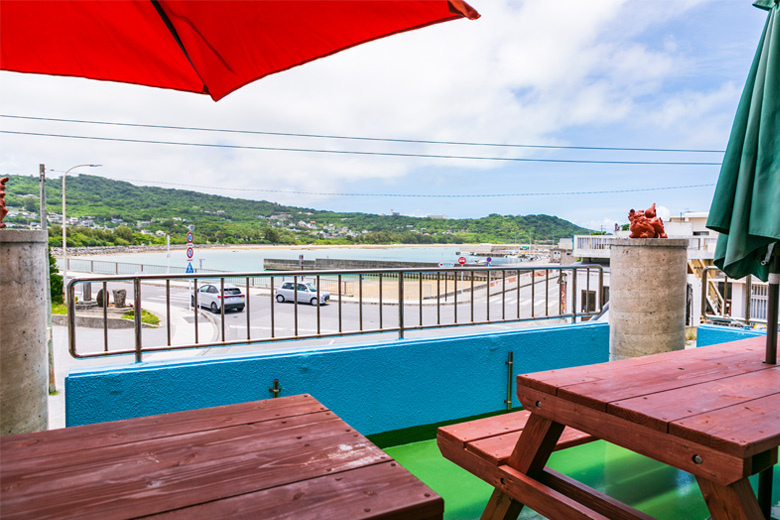テラス席では奥武島のビーチを眺めながらランチが楽しめます。