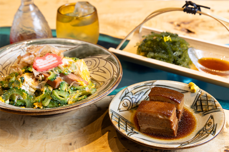 なかでも人気のメニューが、ラフテー、ゴーヤーちゃんぷるー、海ぶどう。