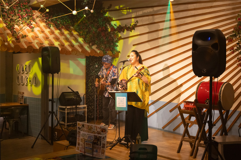 沖縄独自の情緒溢れるメロディーや三線の響きは、ここが日本だということを忘れさせてしまうほど魅力的です。