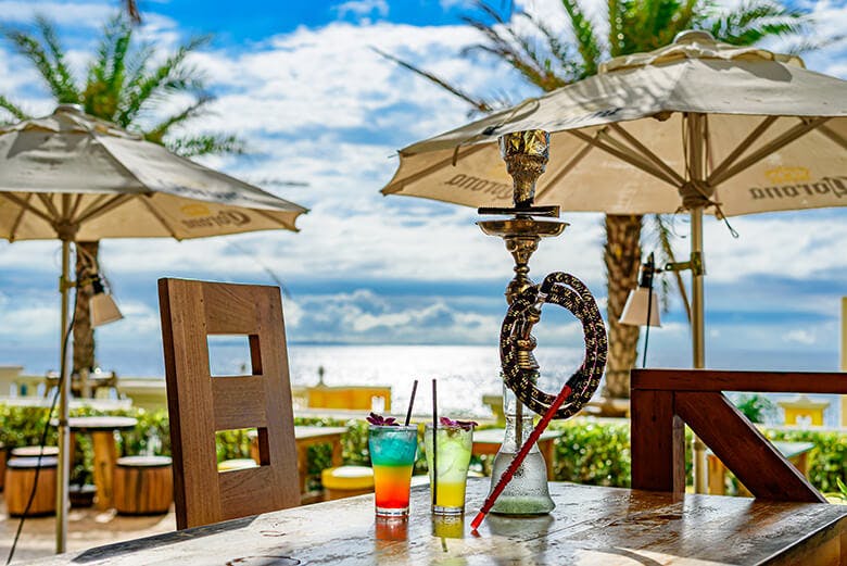 北谷の海を眺めながら カフェメニューやお酒でバリ風リゾートを楽しむ、アメリカンビレッジ内のお店 -