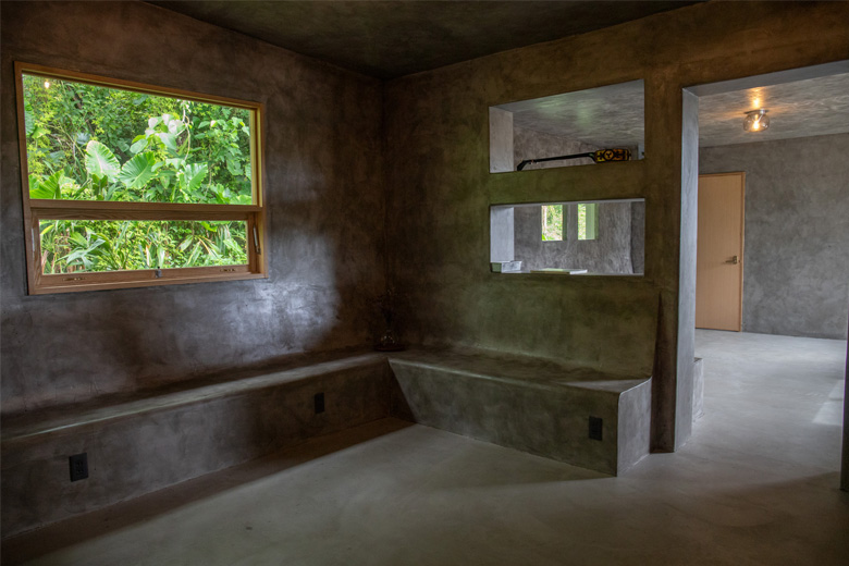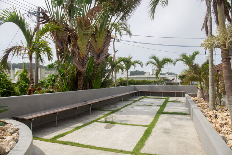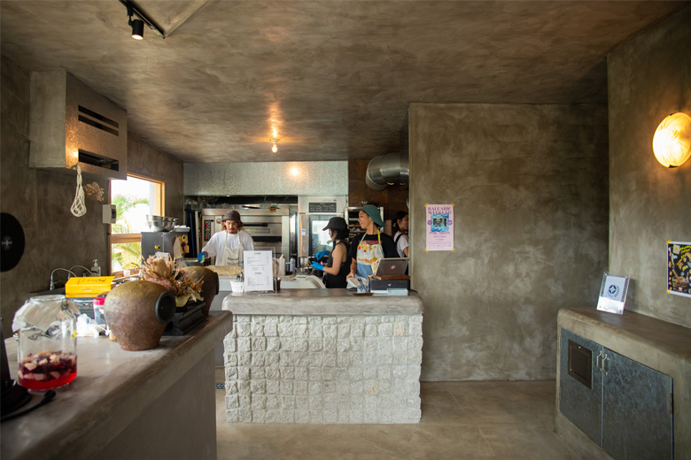 なんでも「空調の効いた公園と、沖縄の太陽を浴びられる公園があり、その中間地点にパン屋がある。」そんなイメージでこの場所を造ったのだそう。