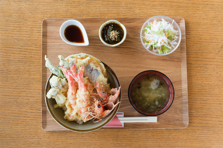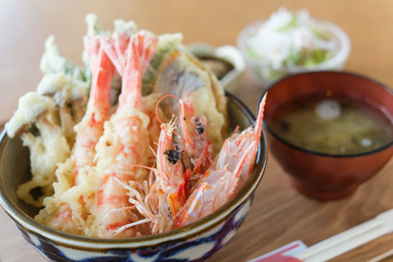 また、衣に使う天ぷら粉はできるだけ30分以内に使い切り、天ぷらは薄衣で仕上げるこだわりや、野菜はなるべく県産品を使うなど、えび以外にも食材にこだわって調理しているといいます。