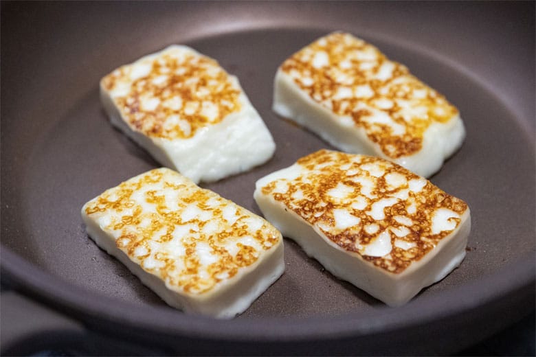 The Cheese Shopで“焼くやつ”と呼ばれている「ハルミ」は焼いても溶けないので、フライパンで表面が色づくまで焼いたり、フライにしたり、お鍋の具材にしても。