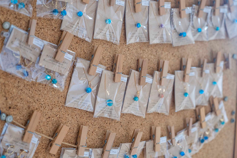 さらに、店内入口にはスタッフの手作りアクセサリーが販売されています。