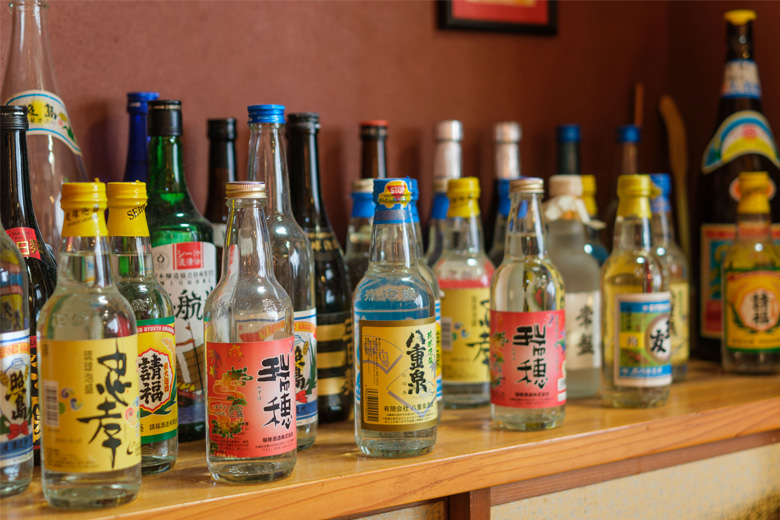 オリオンビールはもちろん、地元の今帰仁酒造で作られる「美しき古里」をはじめ、県内各地の泡盛が揃っています。