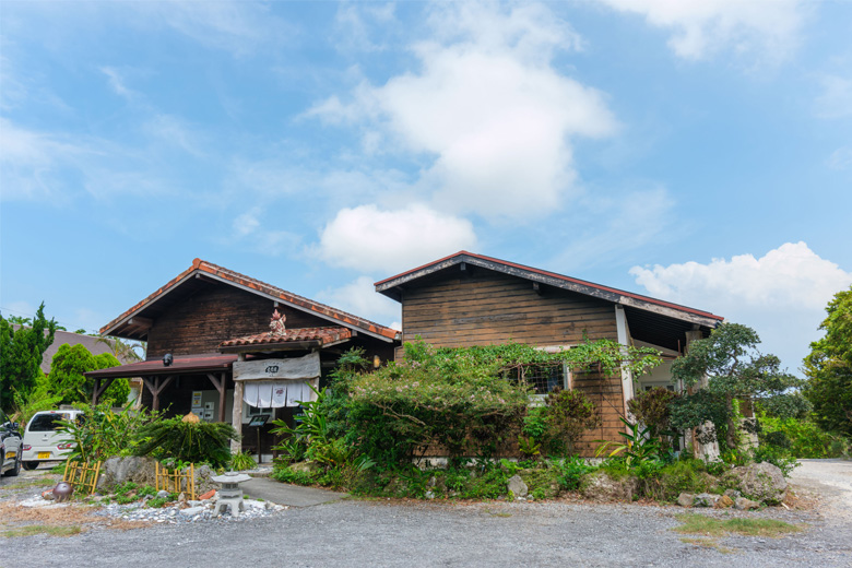 今帰仁村玉城の住宅と畑が混在するのどかな地域に、今帰仁アグー料理が堪能できる長堂屋・今帰仁本店があります。