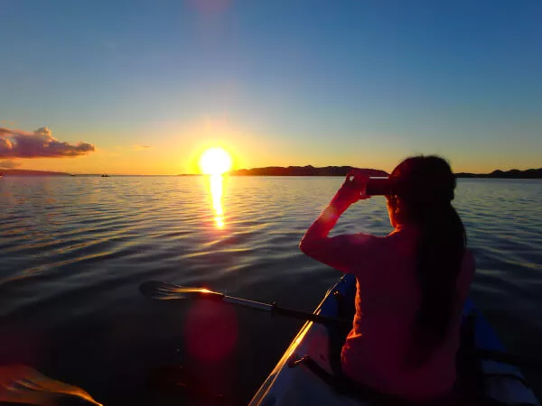 海に沈む夕日を望むロマンチックなサンセットカヤック!