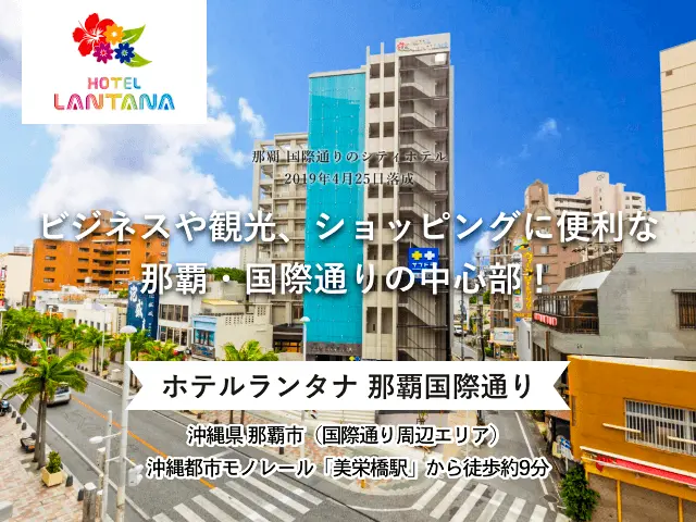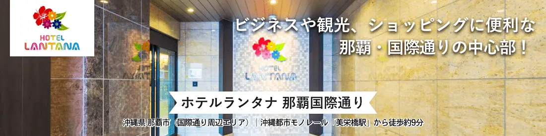 ホテルランタナ 那覇国際通り までのアクセスは、沖縄都市モノレール(ゆいレール)「美栄橋駅」から徒歩約9分です。那覇空港からモノレールをご利用の場合、約15分で美栄橋駅に到着します。