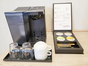 アメニティはフロントでセルフのタイプ、部屋にケトルはありますが飲み物等はありません。また、ガラスコップしかないため、温かいお茶などは飲めません。