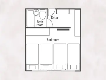 シングルベッドを4台設置。お荷物を置ける広々としたスペースもあり、観光やレジャーのご滞在も快適です。