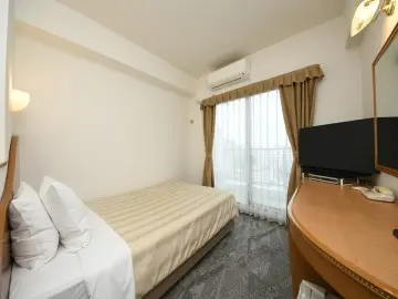 シングルルームビジネスや一人旅におすすめのシングルルーム。全室バルコニー付きのお部屋から那覇市街を望む街側のお部屋です。