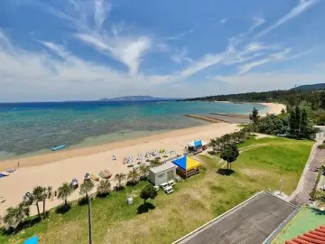 沖縄自動車道「屋嘉IC」は車で15分。万座毛まで車で7分、真栄田岬は25分。マリンスポーツも楽しめるプライベートビーチがホテル目の前に広がる抜群のロケーションです。