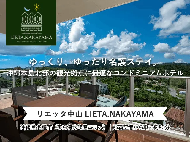 リエッタ中山 までのアクセスは、那覇空港から沖縄自動車道を経由して車で約80分です。路線バスをご利用の場合、名護バスターミナルから系統70番・76番に乗り「名桜大学前」下車、徒歩3分で到着します。