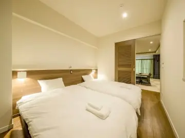 洋室 (ベッド) と畳 (お布団)、お好きなスタイルでお休みいただけます。ご家族、グループはもちろん、ご夫婦やカップルのロングステイにも最適です。