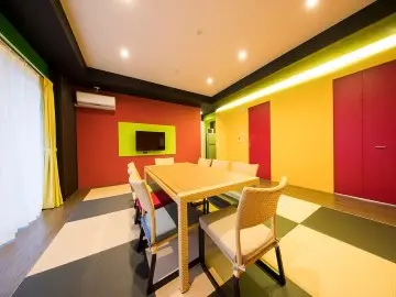 本に囲まれたお部屋や、ビタミンカラーのカラフルなお部屋。星空のように壁がキラキラ光る寝室など、わくわくドキドキの仕掛けがいっぱい♪広々とした畳リビング中心の和モダンデザインで、小さなお子様連れのファミリー旅行にもにもおすすめです。