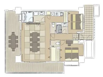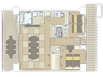 客室の構成 - 2 室のベッドルーム、リビングルーム、ダイニングスペース