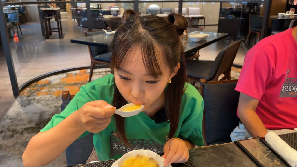 じゅん選手も人生初のフカヒレに「アハァ〜〜……」と昇天寸前!そのとろけるような味わいをぜひ動画でチェックしてください。