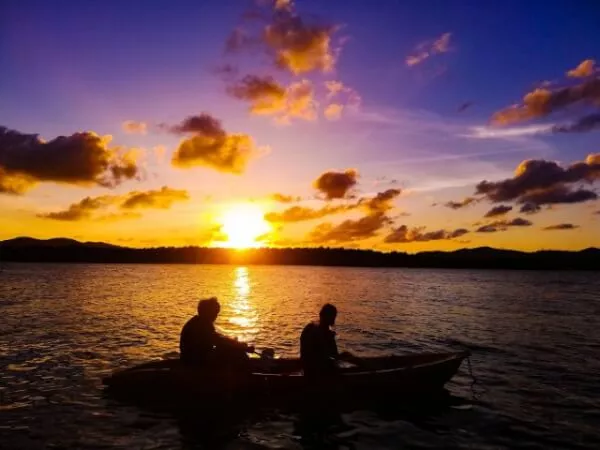 5~10分程度漕いで観察スポットに移動し沈む夕陽をカヤックで眺める
