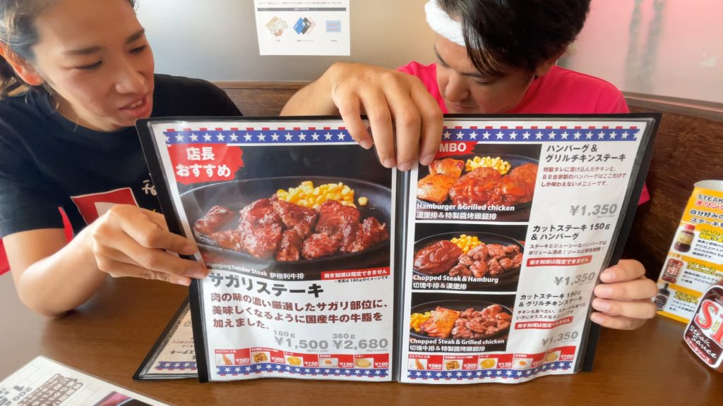 それでは、いよいよ本命のステーキが登場!私たち3人がそれぞれ違うメニューを注文し、その味を徹底レポートします。