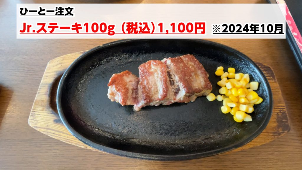 ひーとーの選択:「Jr.ステーキ100g(税込1,100円)」